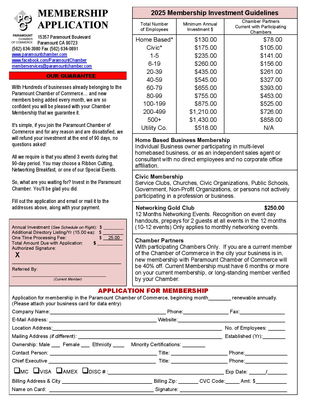 So what are you waiting for? Invest in the Paramount Chamber of Commerce. You'll be glad you did!